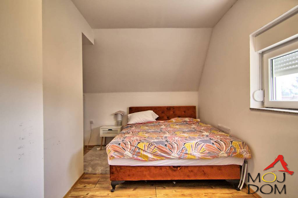 The house has a total area of 112 m² with a very practical layout. It consists of three bedrooms, a spacious living room, a bathroom, and additional space that ensures comfortable family living.