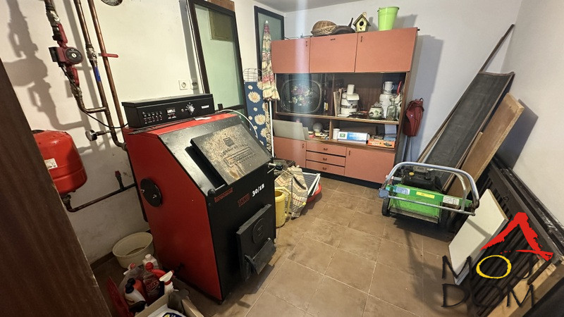The house extends over three levels with a total area of approximately 150 m². It features five rooms, providing a functional layout suitable for a family home or rental purposes. The property is equipped with electricity, water, and central heating, making it suitable for year-round use.