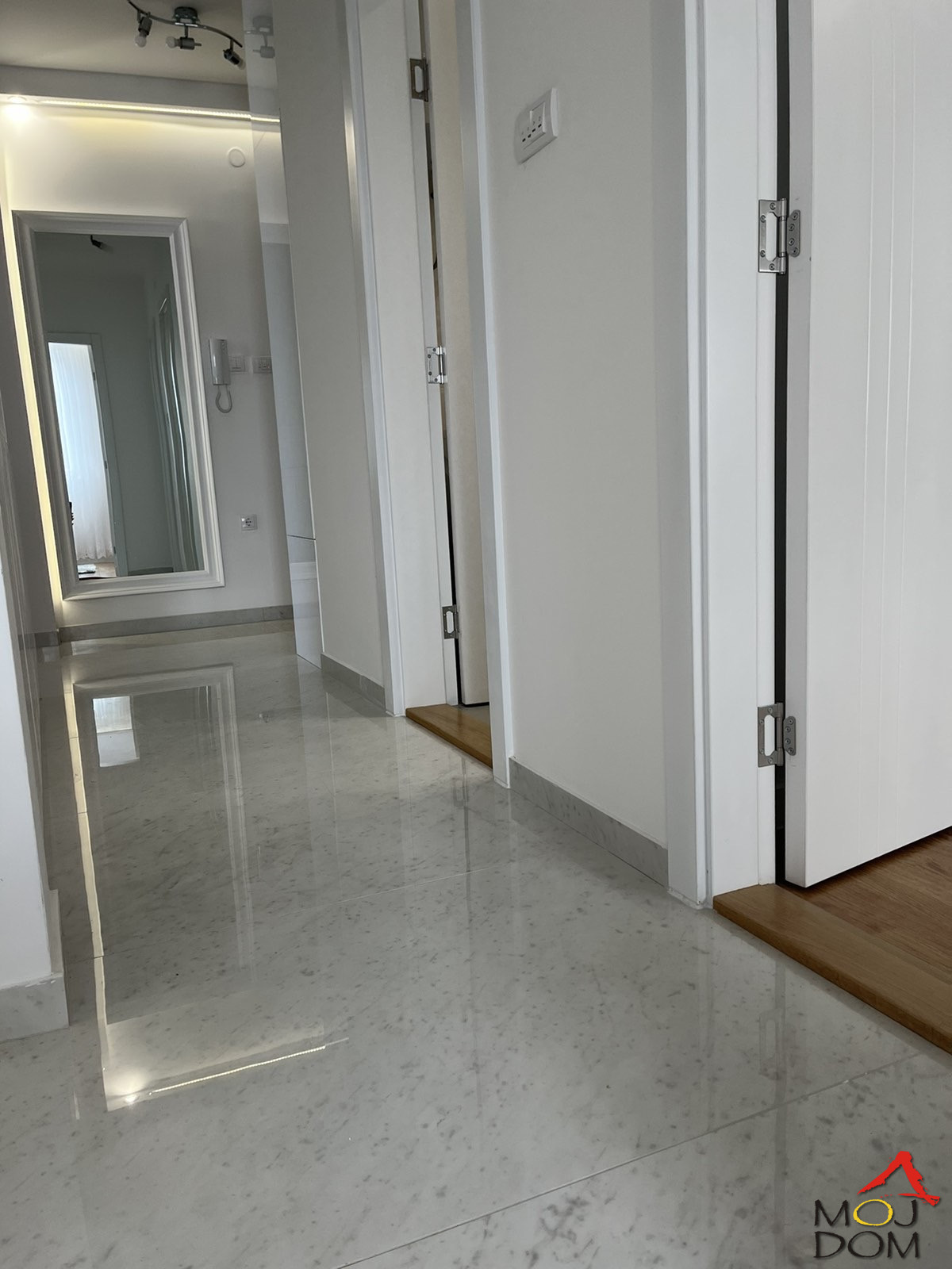 For sale, a brand new deluxe four-bedroom apartment, mostly furnished, measuring 101 square meters. The building is insulated from city noise, yet located in the center of all events, This beautiful and functional apartment consists of a living room, a physically separated kitchen (equipped with all Boss appliances and utensils), 3 rooms, 2 bathrooms, a spacious hallway, and a terrace. Everything is new and under warranty.(Moj Dom Real Estate, Novi Sad, Reg.no. 174)
