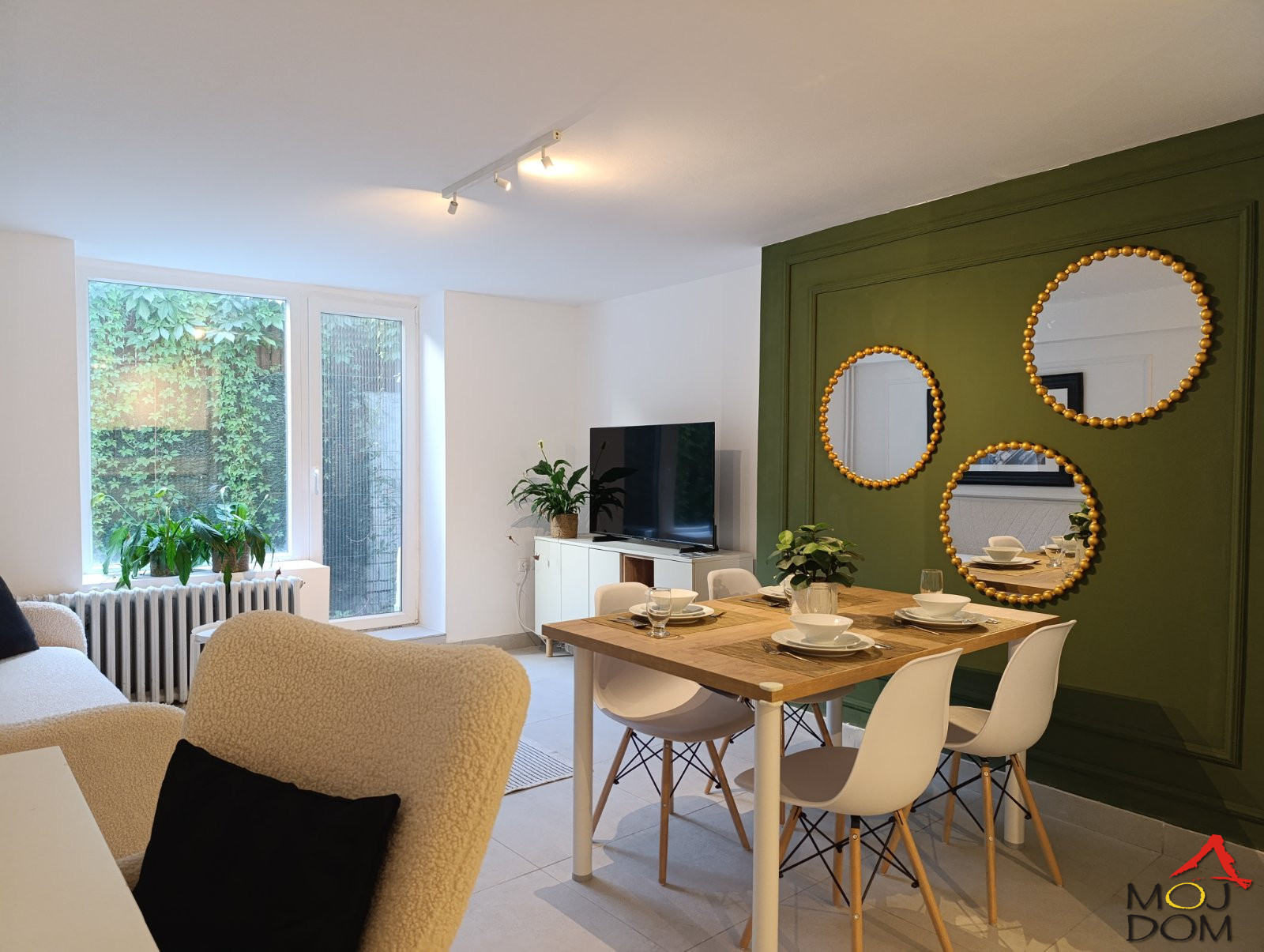 The apartment features two spacious rooms, each with access to its own private courtyard surrounded by greenery, a brand-new custom-made kitchen, and a completely renovated bathroom with new tiles, sanitary elements, and updated plumbing and electrical installations. The stylish furniture, which perfectly complements the interior, remains in the apartment and is included in the price.