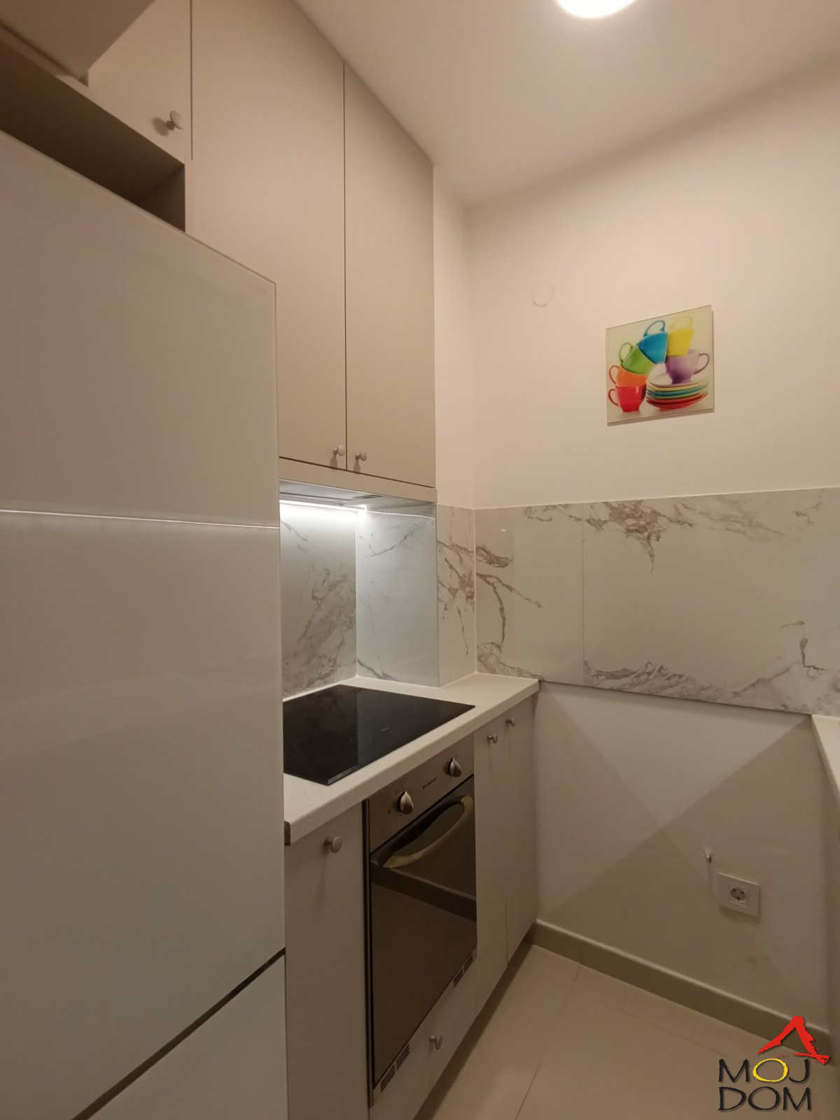 Nova kuhinja sa kompletnom belom tehnikom (rerna, ploča za kuvanje, aspirator i dr.)