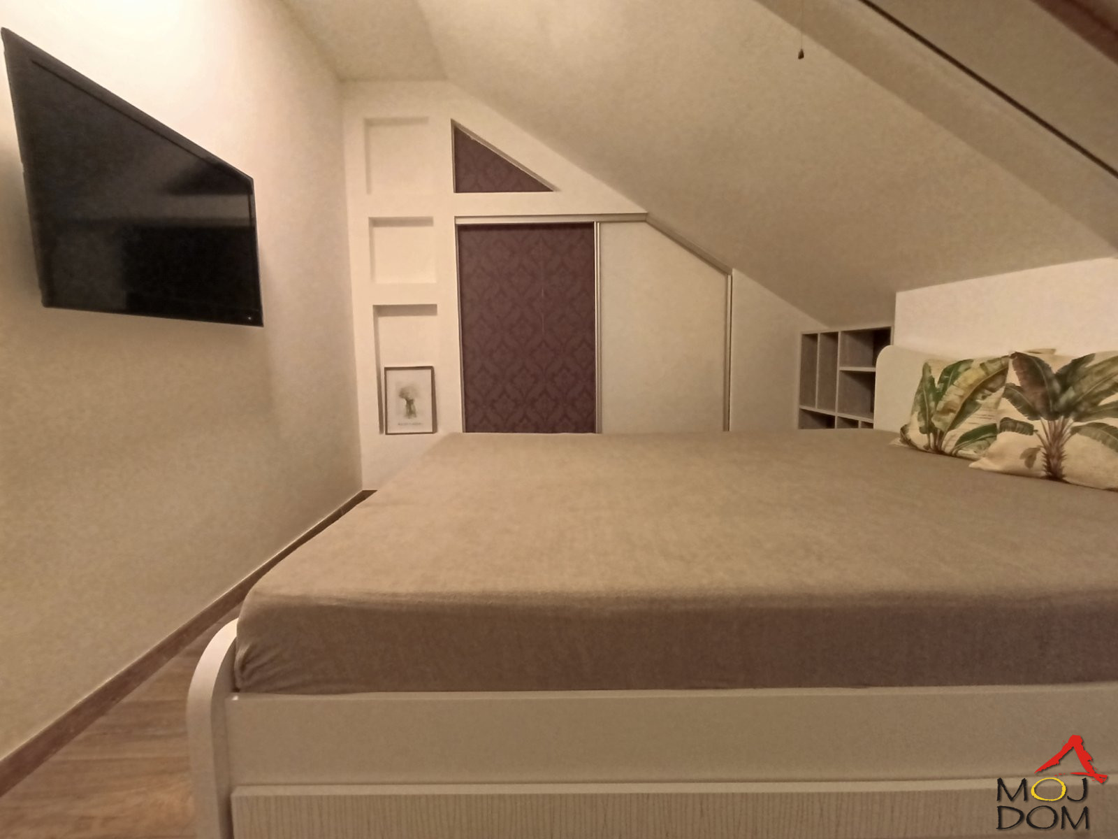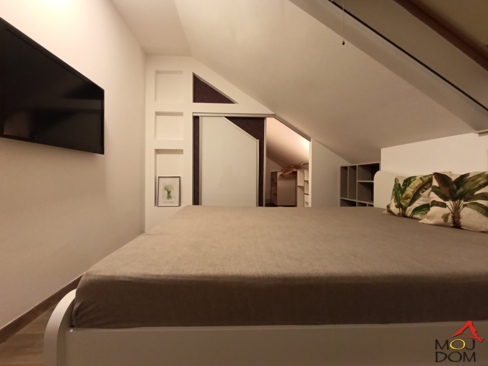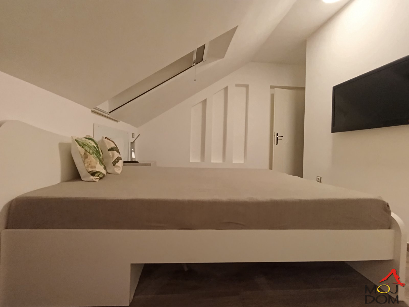 Gornji nivo čine dve odvojene spavaće sobe, od kojih je u jednoj izdvojen deo za garderober