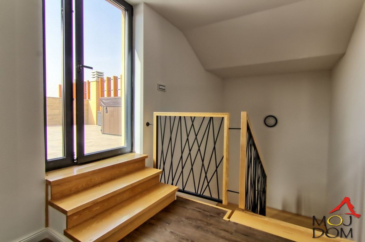 You want a home in a beautiful location surrounded by greenery with a view of the foothills of Fruška Gora and the city at the base. We offer you perhaps the highest quality apartment that can qualify as a house due to its access, independence, yard, and surroundings. You have 181m2 of living space at your disposal with two beautiful spacious terraces and a small yard entrance. When planning and building, the emphasis was on maximum comfort and practicality of a family home where you have three bathrooms and an additional toilet. In addition to a highly functional layout, great care was taken to ensure that the materials installed are of high quality, from tiles throughout the property and underfloor heating to aluminum windows, automated blinds, a multitude of additional small details... and that the cooling and heating system is at an impressive level. Also, on the rooftop terrace in complete privacy, you are greeted by a jacuzzi for maximum enjoyment and relaxation. This is a space that can fully meet all the needs of a multi-member family or even be used for office space due to the practical layout and the possibility of separate offices. Two parking spaces are also available to you. Words cannot adequately describe the opportunity that is being offered to you; you need to see and experience it in person. Contact us to visit your future home.